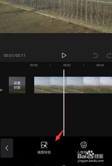将新版剪映打开后,选择视频文件置入,将底部的特效选项栏打开