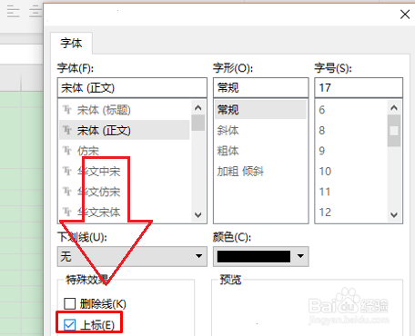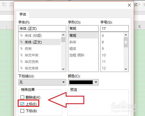 调出单元格格式窗口,在下面的特殊效果下面点选上标。