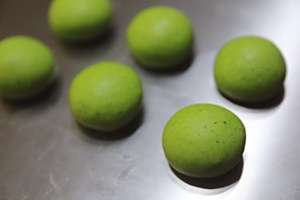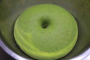 倒入菠菜汁,厨师机先2档再4档,揉成团