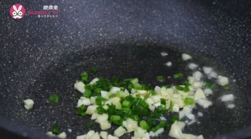 11热锅冷油煸香蒜末、葱花。