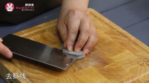 1虾洗净后去头去壳,开背除虾线。
