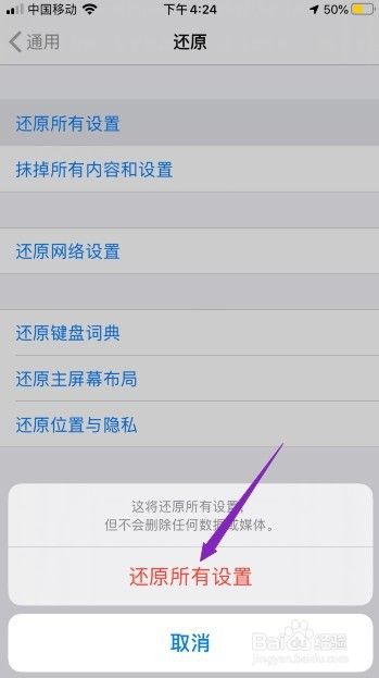5、继续点击还原所有设置,然后重启手机,当还原所有设置后,蓝牙也就可以正常打开了。