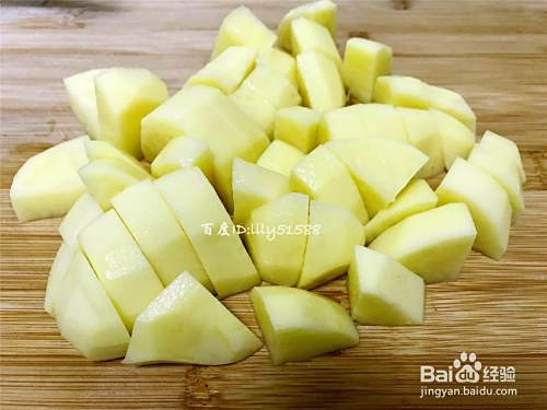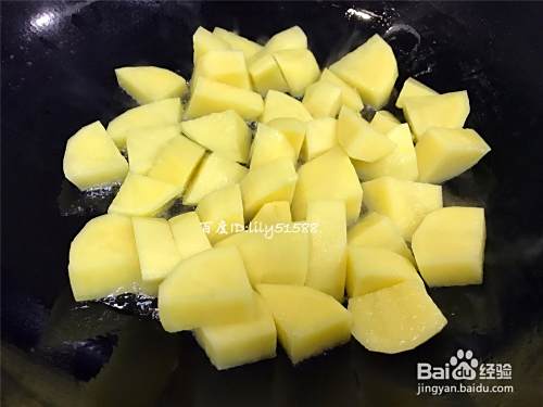 烧热锅放油,把土豆放入锅里炒断生后,倒出来备用。
