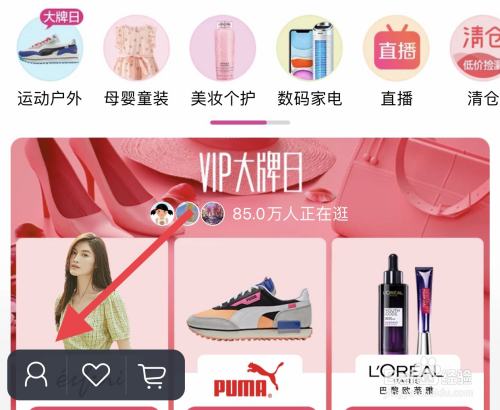 我们在手机上打开这个唯品会App软件进来,然后在这个页面中点击左下角有一个人头的符号。