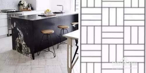 田字形铺法是用条状板铺成四个正方形的块状地板(或直接加工成正方形的拼花地板),然后在铺地板的时候相邻的正方形角度呈直角,然后横竖更替,最后呈现出田字的效果。这种拼贴方式和普通拼贴方式比起来很有意思,而且田字拼施工简单,立体感强,很有视觉冲击力,给人眼前一亮的感觉。