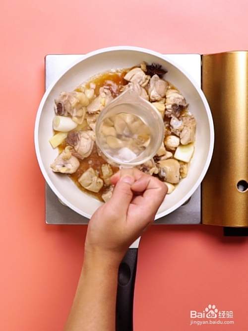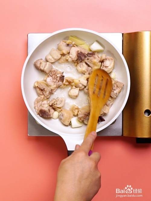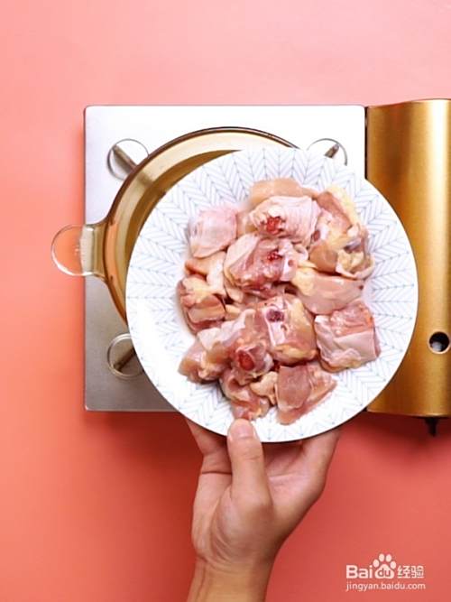将柴鸡肉400克放入锅中,加入料酒4克,焯水去腥去血沫