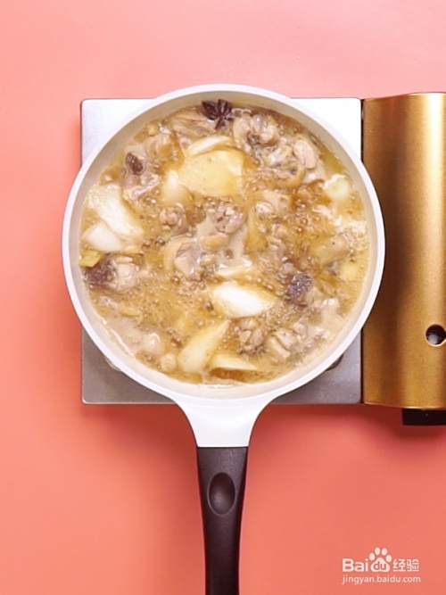 加清水500ML,倒入山药,加入金粉3克,白砂糖5克,盐3克,胡椒粉2克,搅拌均匀,大火煮沸,转至中火煮15分钟即可