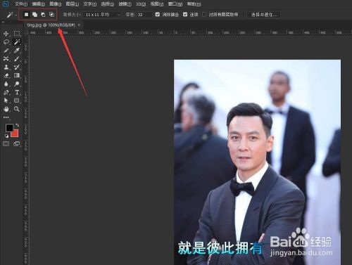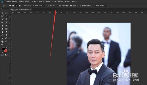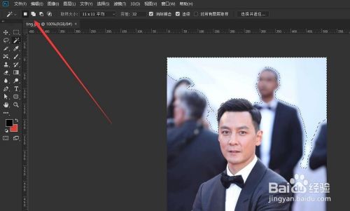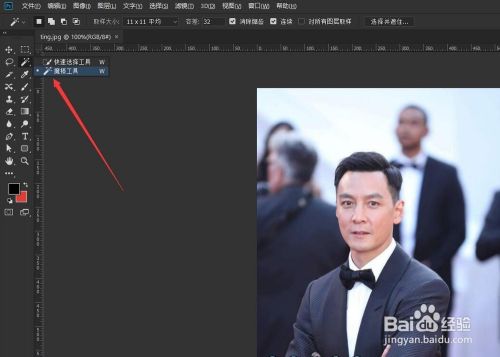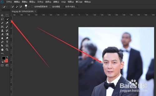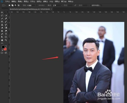 第一步:打开熟悉的PS软件,我们把彦祖的帅气西装照导入进来。男人真是越成熟越有魅力。