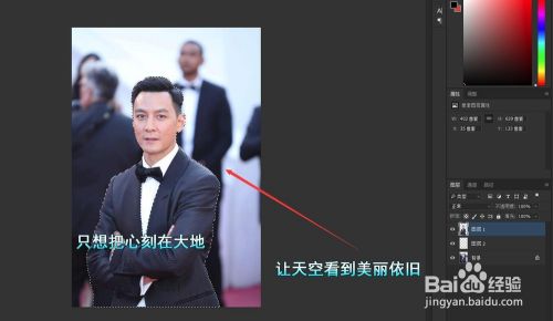 第十一步:任何工具是不是万能的要相互配合使用,这里我们配合使用快速选择工具,选中彦祖的轮廓。然后在新建一个图层。