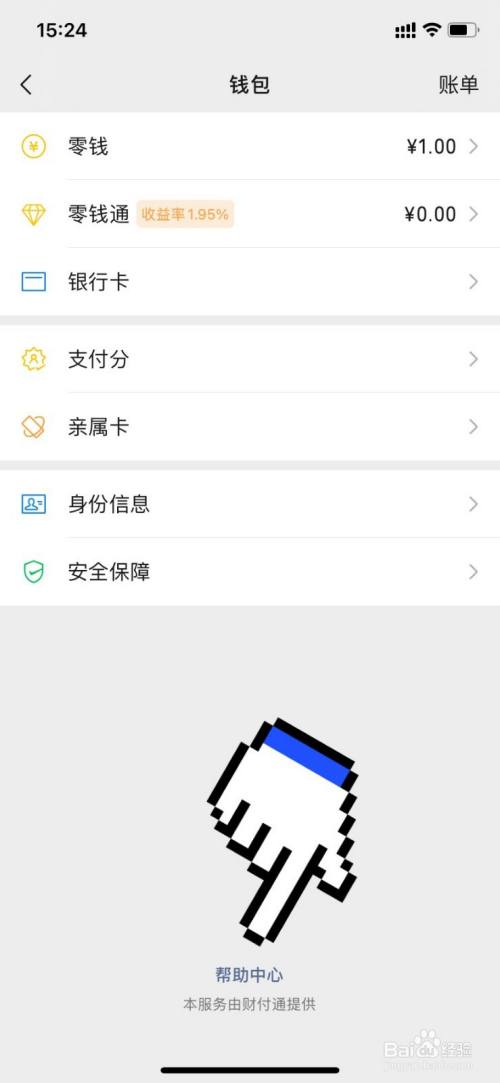 在钱包页面,找到下方的【帮助中心】选项,点击进入