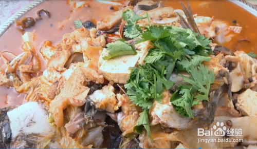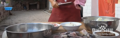 首先将鲤鱼清洗干净,然后将鲤鱼剁成块状;将豆腐切成块状,将白菜切成段;将五花肉切成条状;