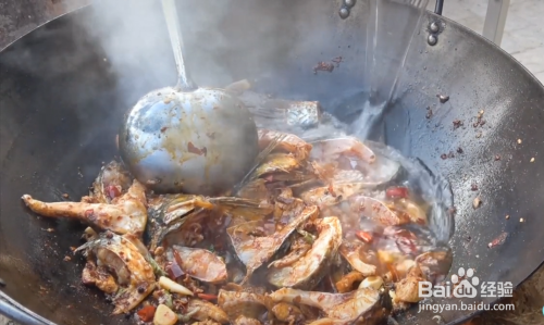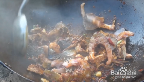 炒香后加入一勺豆瓣酱和一勺蚝油,生抽,进行翻炒;再加入一包炖鱼料;