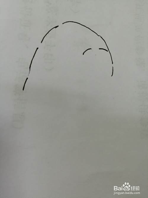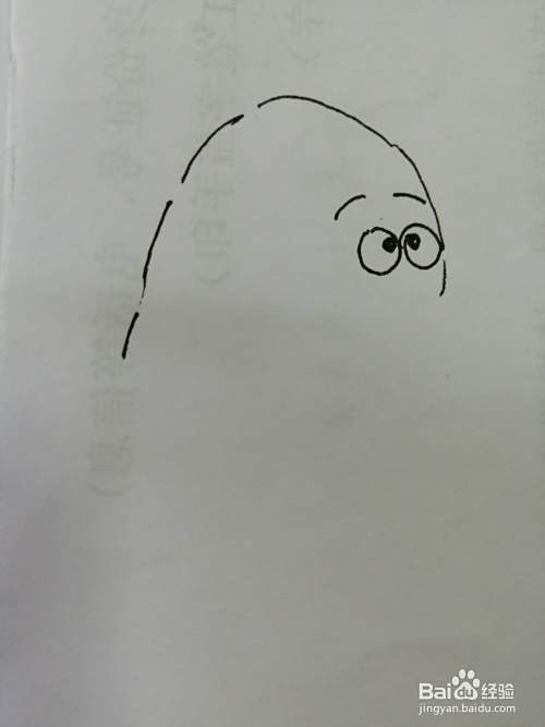 第三步,接着在大大的眼睛下面画出一条弧形的嘴巴。