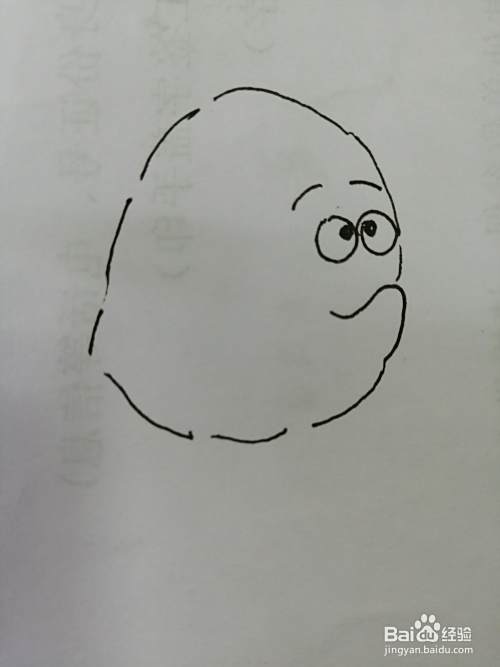 第六步,然后在可爱的气泡鱼的眼睛左边身体里面画出一条鱼鳍。