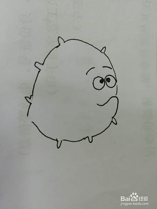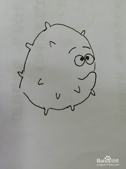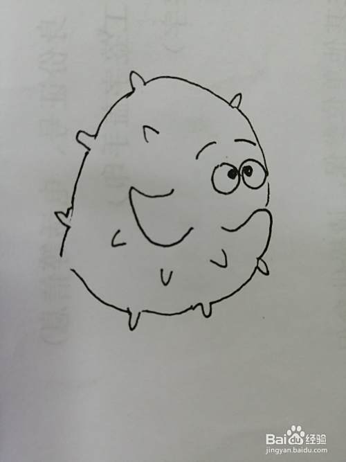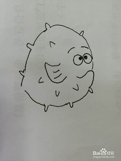 第四步,然后在可爱的气泡鱼的身体外面画出凸起的小弧线。