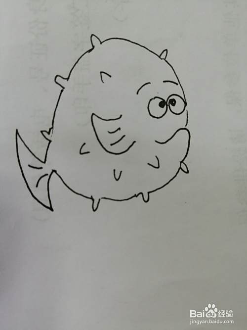 第七步,最后把可爱的气泡鱼的尾巴画完整。超级可爱的气泡鱼就画好了。