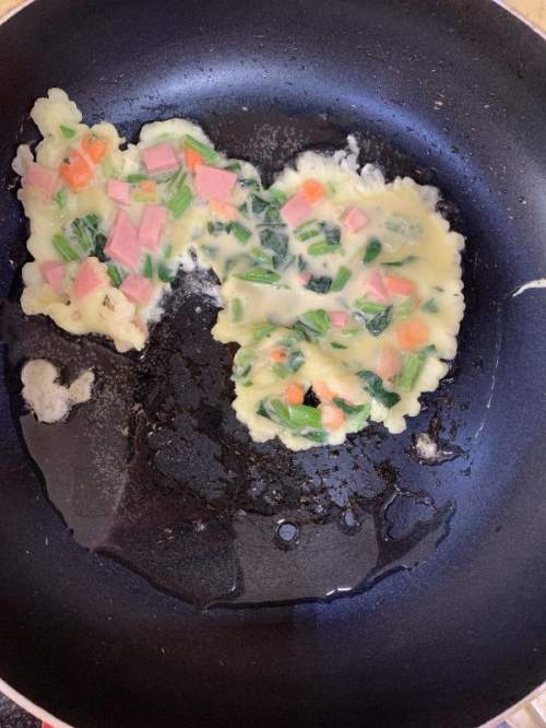 10平底锅热锅倒适量食用油,六成热,放进搅拌好的面糊糊,中小火,慢慢煎至金黄