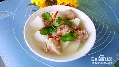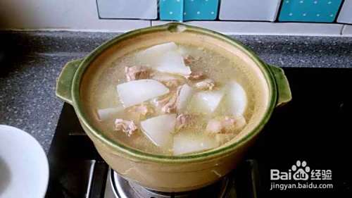 羊肉煲至九成熟,下入焯水的萝卜煲几分钟即可。