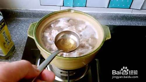在放入葱和姜片,开锅后盖上砂锅盖小火煲1个小时左右。