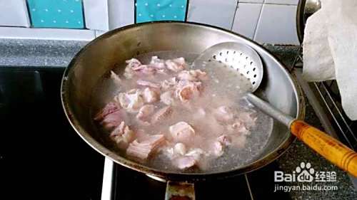 锅中加入水来焯羊肉块,开锅捞出备用。