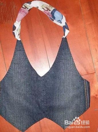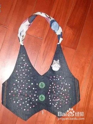 准备好旧牛仔裤改马甲材料:旧牛仔裤一条,旧丝巾一条,最好是窄的长条丝巾,珠片