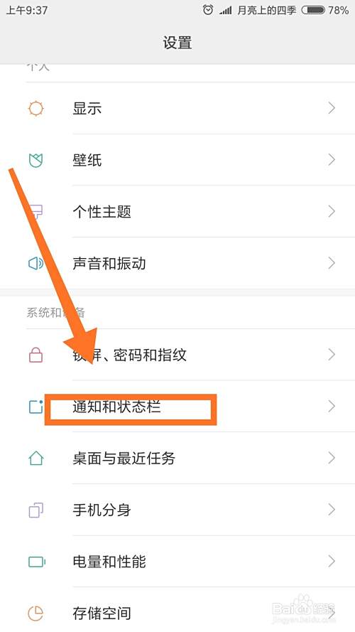 点击通知和状态栏