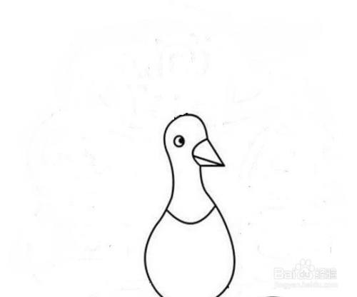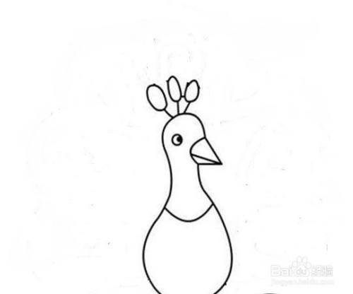 第二步,我们接着画出孔雀的眼睛和嘴巴。