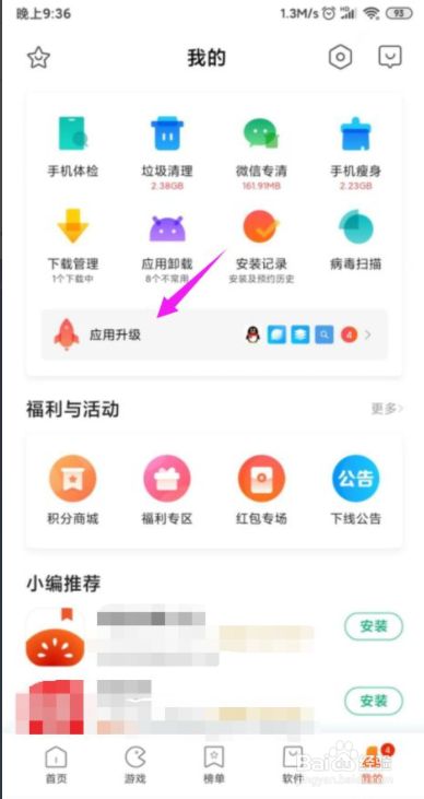 然后第三步,我们继续把【应用升级】按开下,如图。