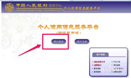 完成注册之后,选择返回个人信用信息服务平台,使用已经注册的账户登陆,选择用户登陆。