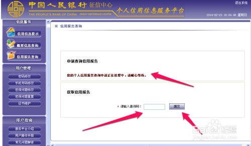 已经提交申请,人民银行需要24小时之内同意你的申请,然后再登陆平台输入验证码获取自己的信用报告。