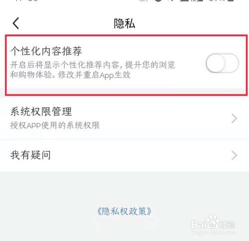 打开如下图界面,选择个性化内容推荐选项,点击关闭后面的开关,这样个性化内容推荐就关闭了。