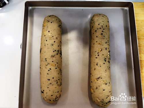 把整形好的面团,放在烤盘上,中间留开一定距离,放在温暖的地方发二次发酵到原来的两倍