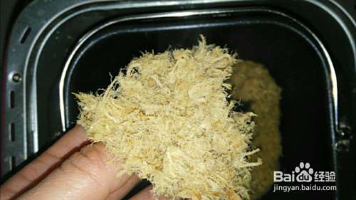 烤好可以用手动打蛋器再搅拌搅拌,肉松就更细更蓬松了。