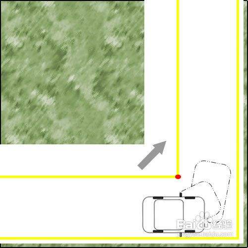 当自己与红点平齐时打左转向。(图中黄线真实存在,红点不是实杆,只是设想的一个参考物)