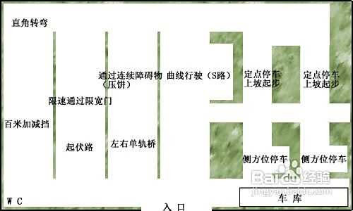 评分标准:车轮触碰突出点(上图红点),不合格;车轮每触碰道路边缘线(上图黄线)一次,扣20分;借助倒车完成作业,扣10分。