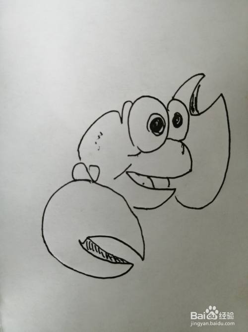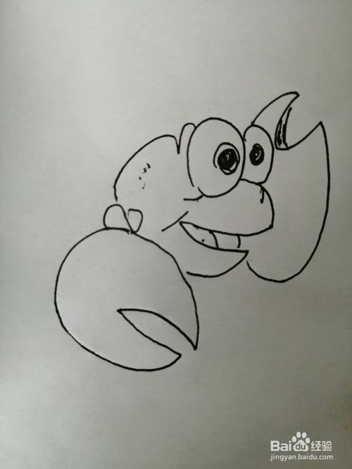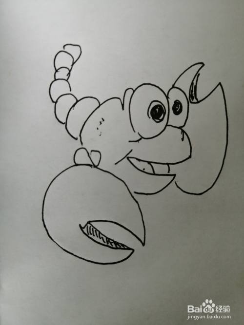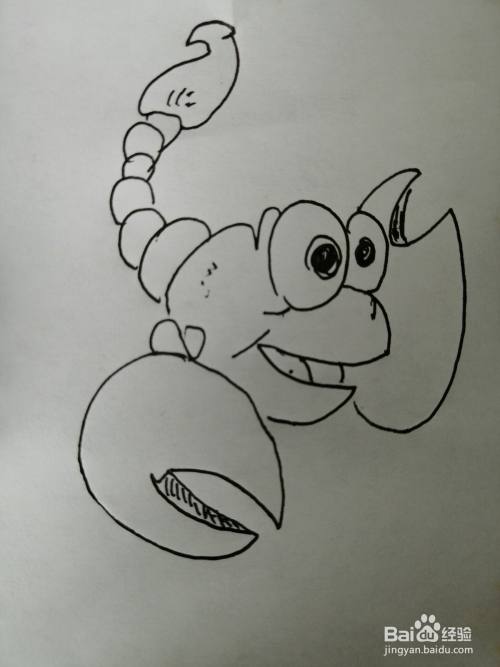 第五步,接着在可爱的小蝎子的头部右边画出一个小钳子,小钳子被挡住了一部分。