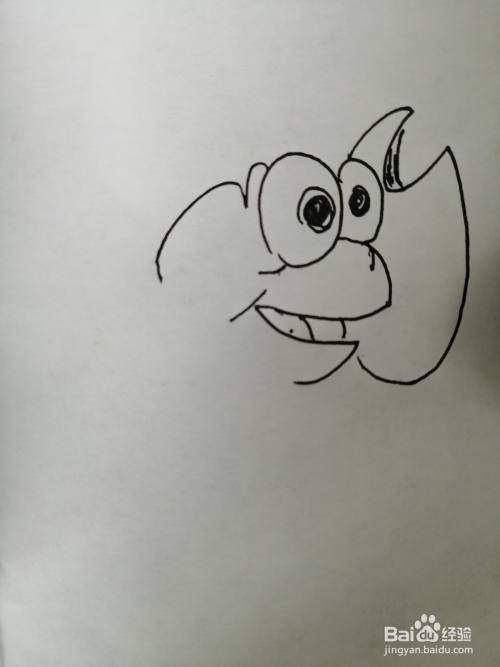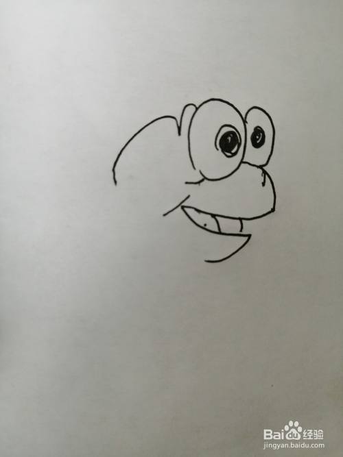 第四步,接着在小蝎子大大的眼睛下面画出小嘴巴和小舌头,画法比较简单。
