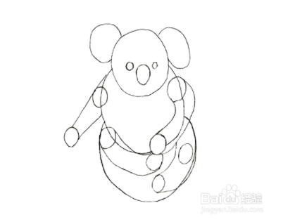 用三个重叠的圆圈勾勒考拉的身体,注意身体比例。