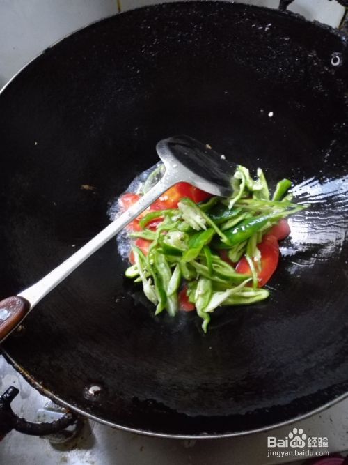 翻炒一会,让青椒断生;