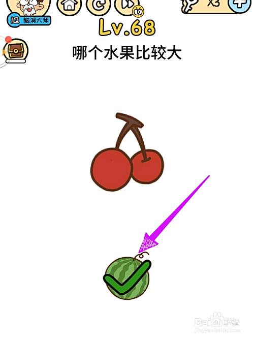很多小伙伴都在玩脑洞大大大这一个小游戏,那么,脑洞大大大第68关,哪个水果比较大?怎么过关呢?一起来看一下吧!