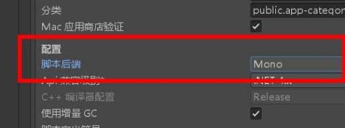 最后我们就可以找到脚本后端配置为Mono