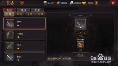 注意:在游戏中锻造所需材料,材料可以通过每日活跃任务、副本、城战、酒馆等途径获得。每种品质的装备有强化等级上限,且最高的强化等级上限为18级。