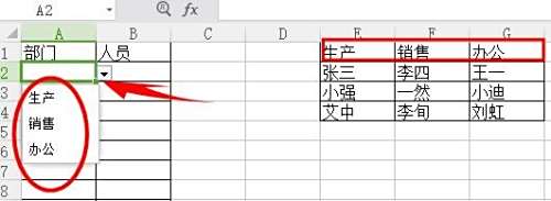 选择设置里面的下拉选项序列,来源框内输入公式=indirect(a2)