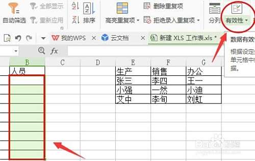 出现一个指定名称对话框,勾选首行,点击确定。选中要插入的位置,点击数据菜单栏下的有效性。