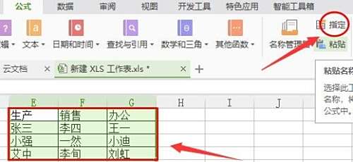 创建完一级菜单之后,一级单元格内不能为空。选中要做二级下拉列表的信息,点击公式菜单栏下的指定按钮。