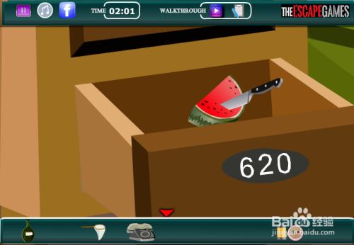 右走,棕色柜子第二个抽屉输入密码620得到刀。