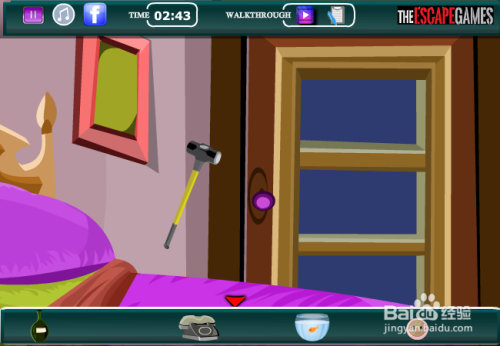 右走,使用锤子砸开锁,逃离神奇漫画房间。