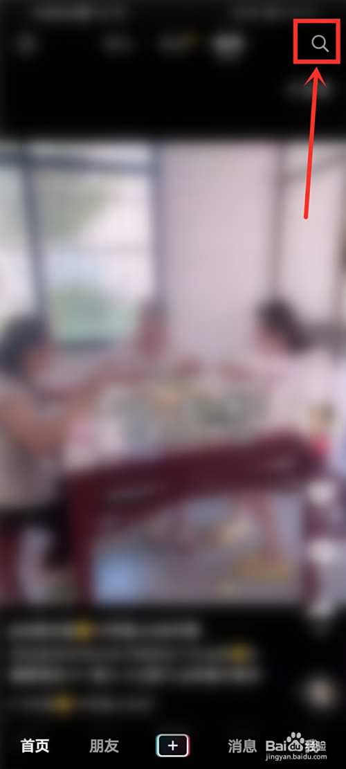 打开抖音app首页,点击顶部【放大镜】图标,进入搜索页。