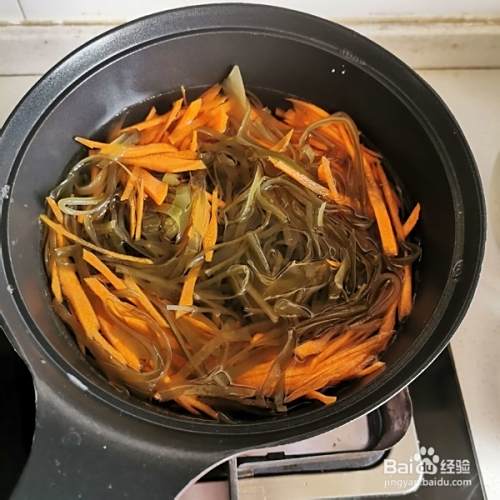 锅中放入倒入海带胡萝卜丝煮开捞出过凉水