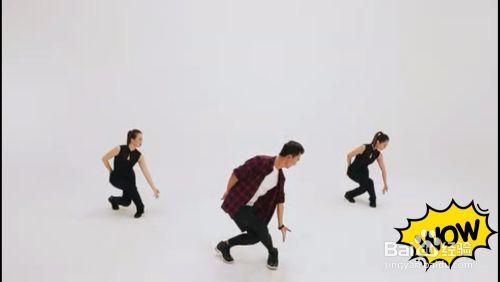 然后,挥动大臂双手向右打风火轮(左手从最低位向右前方划圆,右手向后下方划圆)--大臂挥动2圈后--右手从腰间掏出高举最高处,左手按掌在腰间--左腿后曳步--回落手。共8拍。